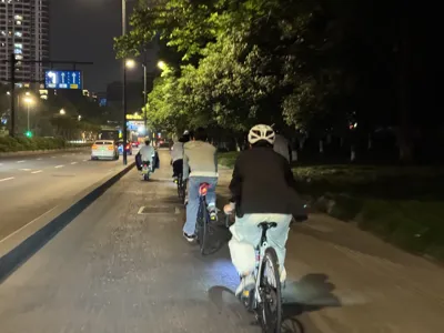 这是2024年11月11日晚的一次夜骑在滨江的江边的随拍,作为BIN周刊的封面首秀,BIN即是斌,也是滨江的滨
